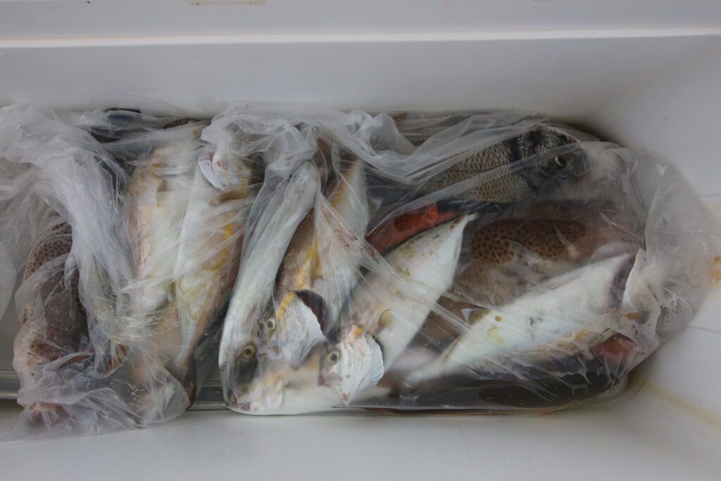 ミニオンズに黒鯛、ヨコスジフエダイ、ハタ類がポツリポツリ